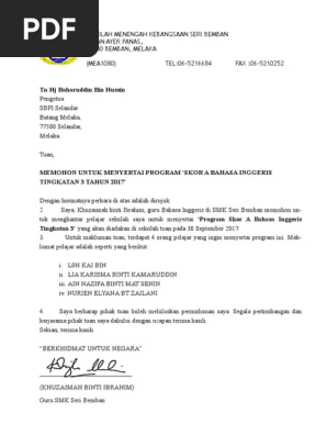 Surat Permohonan Menyertai Program Pdf