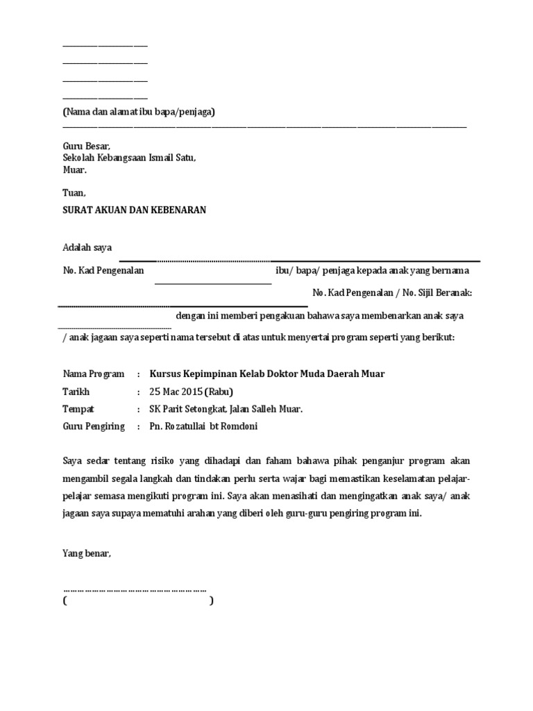 The assortment of images Contoh Surat Makluman Aktiviti Kokurikulum Kepada Ibu Bapa that are elected directly by the admin and with high res HD as well as facilitated to download images. Adapun surat pernyataan ini diperbuat untuk tujuan mengikuti program sertifikasi guru. Surat Makluman Ibu Bapa Berkaitan Program Sekolah 2014.