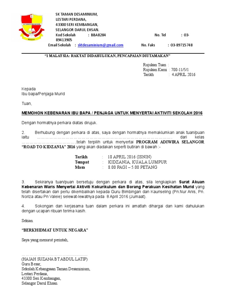 Surat Kebenaran Ibu Bapa Untuk Menyertai Program Terbaru Letter Website